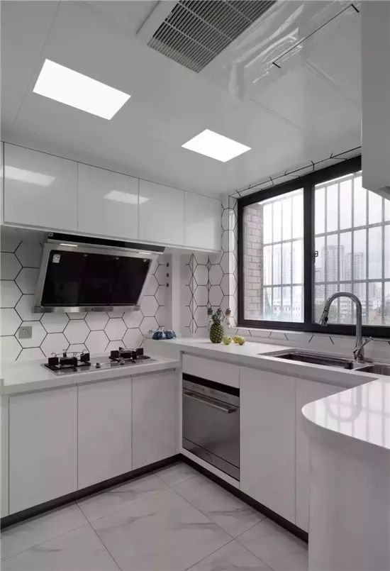 5、厨房内灯光要足够,而照出来的灯光必须是白色,否则影响颜色判断,以至食物是否做熟也辨不出来。同时要避免灯光产生阴影,所以射灯不适宜使用。