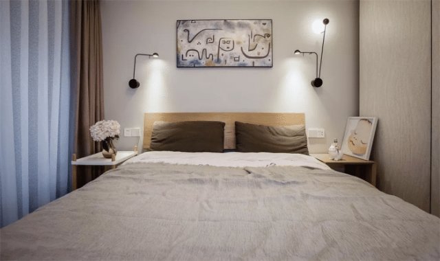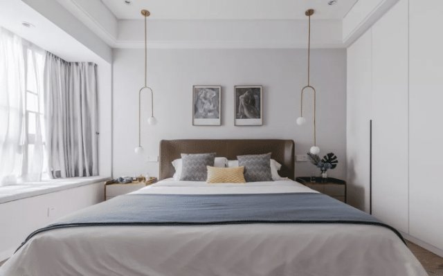 ▲小户型的卧室空间,不适宜选择造型繁杂且大件的灯具,可以选简约的床头吊灯、筒灯、壁灯等小巧又满足照明需求的灯具,这可以从视觉上打造一个简单开阔的空间。