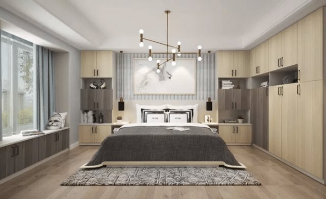 卧室设计布置讲究舒适轻松,大面积的卧室房间可以分区域设计,但对于小户型来说,合理规划布局,实用又不多占据空间才是王道。中山帮忙装修网公司分享。