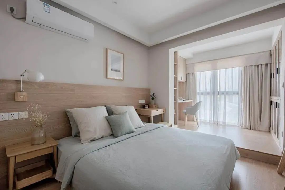阳台作为连接室内与室外的空间,有着良好的采光与景观视线,当卧室带有阳台的时候,通过巧妙的布局,可以让家显得更加有趣舒适。