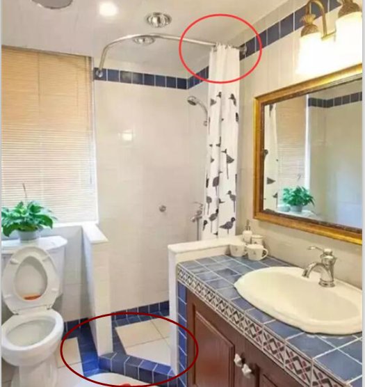 万一淋浴房跟挡水条都不喜欢呢?还有没有更简便操作?下图这种干湿分离的方法真是太省心了。直接使用浴帘把马桶和沐浴区隔开,这样洗澡的时候水花就不会到处乱溅,避免卫生间时刻处在潮湿的环境,影响我们的身体健康了。