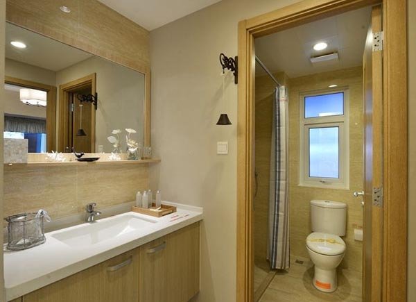 大户型不用担心干湿分离的问题,相对来说透气性也比较好。但3平卫生间相对来说比较小,就需要提前进行划分区域,可以采用弧形玻璃淋浴房,很好的起到了干湿分离的作用。