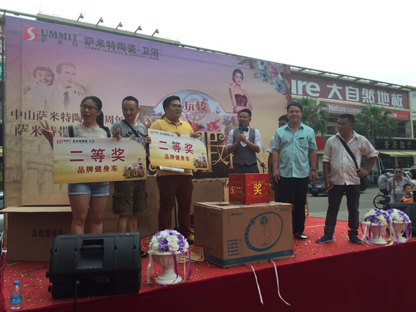 二等奖幸运业主!奖品是一辆品牌健身车,获奖的2位业主看上去也是喜欢做运动的。