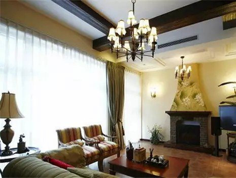 “看花开花落,云卷云舒”。简约欧式风格的客厅吊灯采用的是全铜材质的吊灯,简约的灯具造型又不失复古的欧式韵味,采用白光光源来试整个客厅更加明亮。
