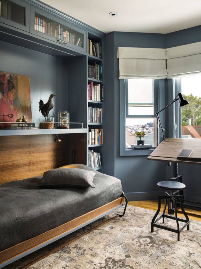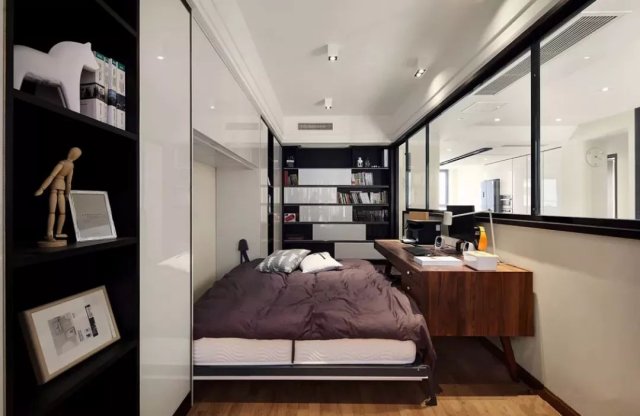 把床给隐藏起来,平时书房里主需要摆放一张沙发。