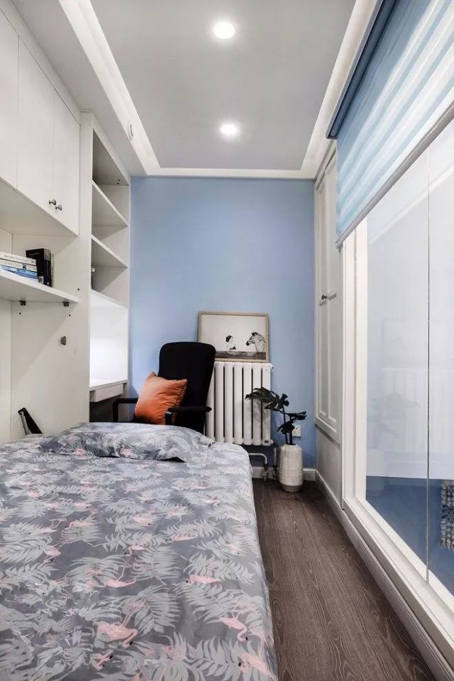 就算这间卧室只有不到5平米的大小,也可以塞下一张床和一个书桌。