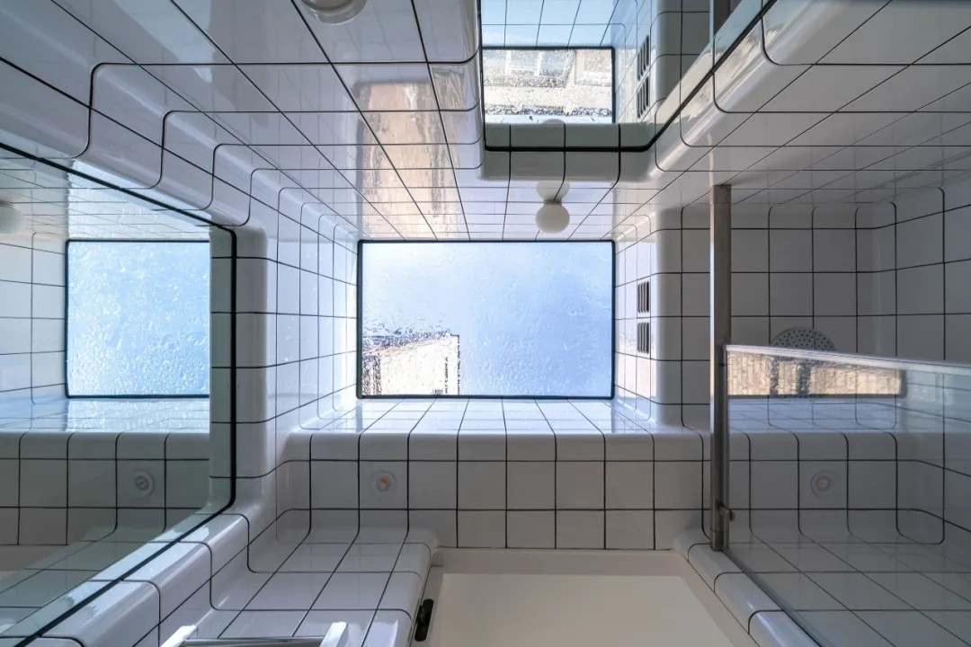 在二楼,四间明亮通风的卧室和一个走廊式步入式衣橱是简约优雅的典范,浴室中的几何瓷砖和意想不到的天窗增添了俏皮的气息。