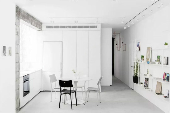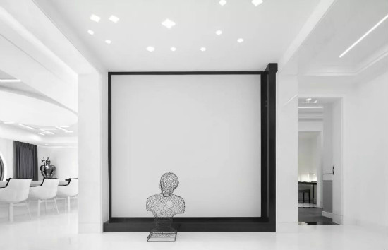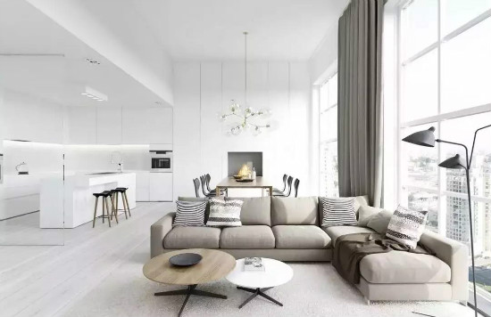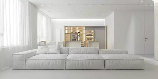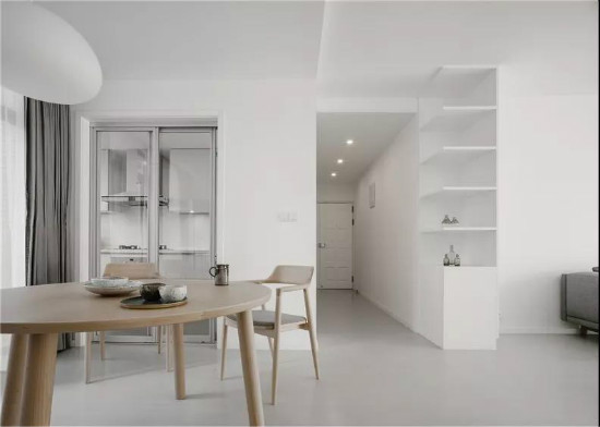 从色彩上来说,极简风格给人的直观印象,便是利用“白色”这一干净纯粹的色调来做大量铺陈,巧妙地奠定空间的简约基调。