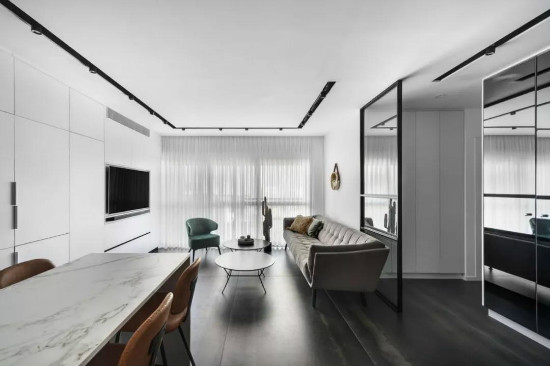 黑、灰色调皆可作为辅助色来凸显层次,局部加入跳跃的亮色形成视觉焦点,让整个画面在保持通透、敞亮的同时,又不乏现代时尚的气息。